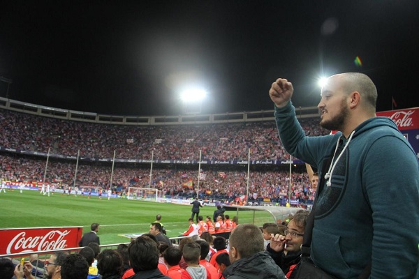 比如说吧,我们唯喔的皇马FanTV记者赵指导,在马德里德比的卡尔德隆球场,为了给我们奉献第一手的现场资料,竟然埋伏在了客场的球迷看台,而且还是第三排,众目睽睽之下,果然是艺高人胆大,来来来,看一看他给我们送来了什么珍贵的现场图片。