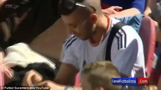 这位老兄难道是团伙作战么,因为我团球迷可在现场不只抓住了他这么一个卧底,这不下面这位,拿一件皇马球衣挡住了自己的面部!真以为你套上白色球衣就是自己人吗?嘿嘿,还不是被我们抓个正着!