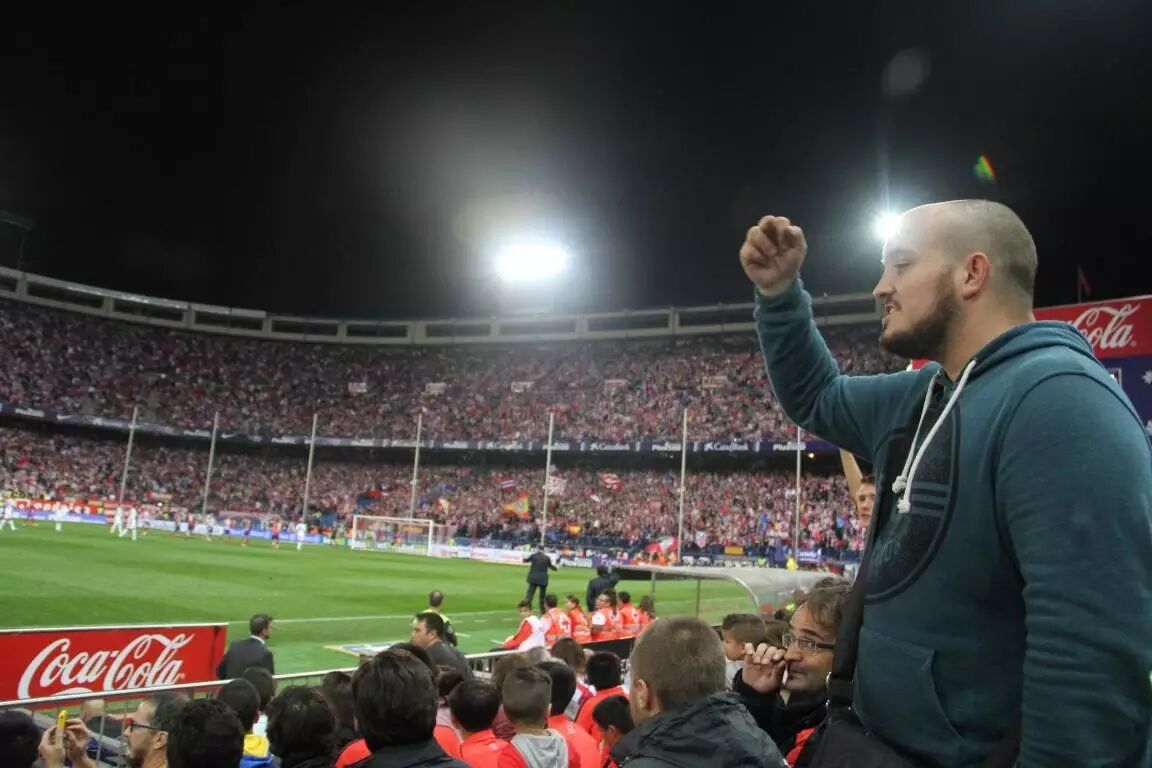 (坐在一群马竞死忠中间,大气都不敢出,这种为球迷们服务的精神你们感动了么?)
