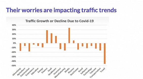 疫情对于不同话题互联网流量的增长和降低趋势的影响