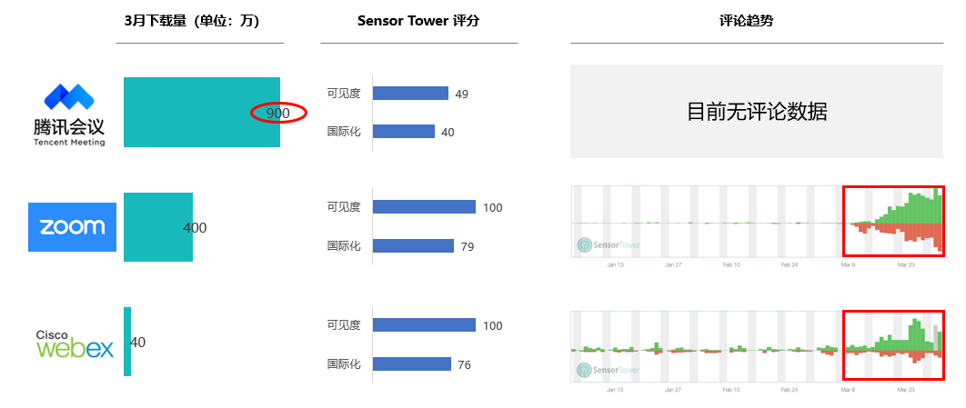得益于中国市场,腾讯会议2020年3月的下载数高达900万。