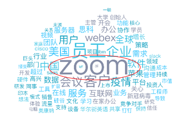 Zoom 3月媒体报道关键词;来源:Meltwater中国社交媒体监测平台