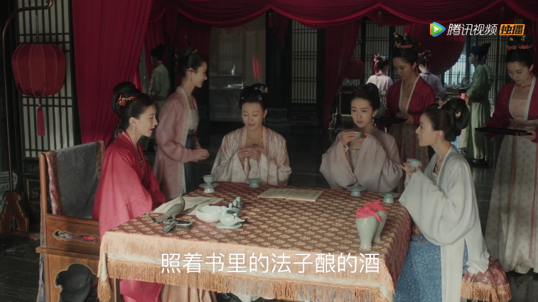皇帝与韩琦等人在书房议事之时,皇后与后宫众娘子在讨论酿酒、制饼的各类新式方法。