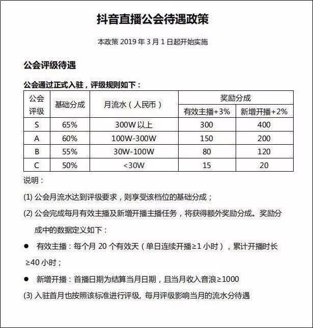 两个月后,抖音更是在北京召集各大头部公会,当场确定并发布全新的公会政策。此番变动,大公会失去了等级优势,依靠挂靠行为再也无法形成头部公会。