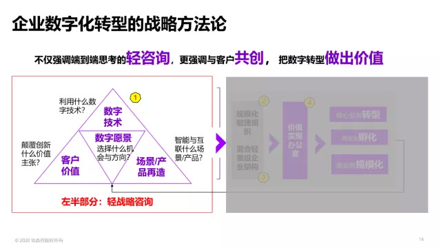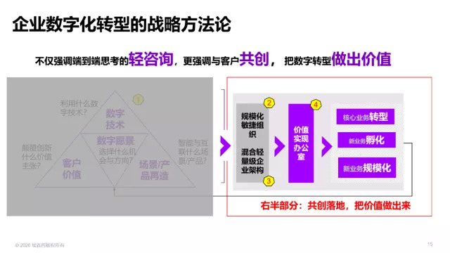 当我们推出了“轻战略咨询”和“共创落地模式”的战略方法论之后,咨询就不再只是PPT堆叠了,而是与客户达成初步想法之后的共创,是与客户一起把数字转型做出价值来的过程。