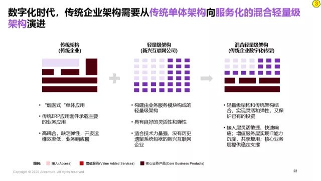 数字技术支撑新的混合轻量架构,混合轻量架构支撑快速的场景式创新。没有企业架构的重塑,前面说的“轻战略咨询”的快速创新都是空话,没有办法有效落地。