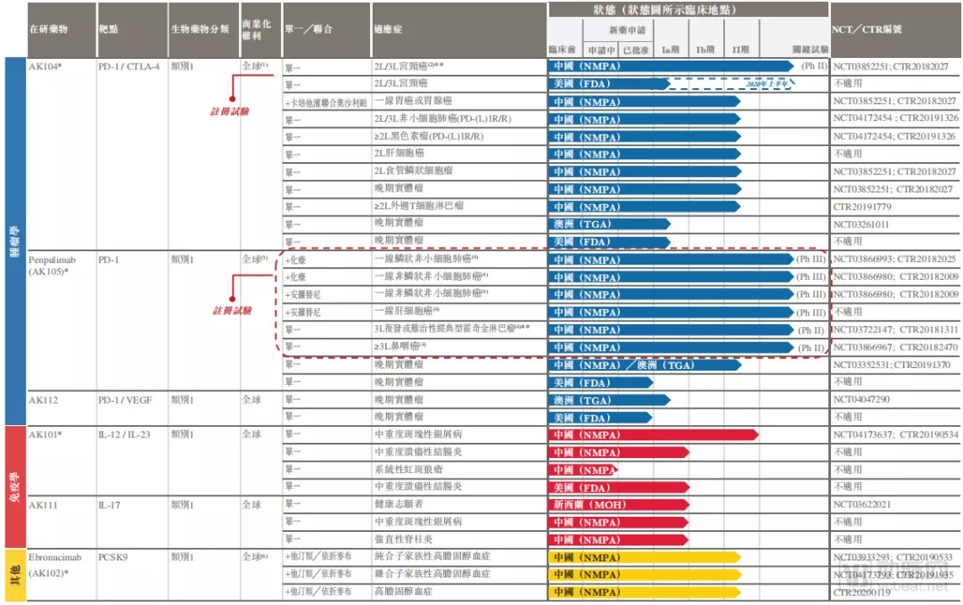 5、两款头部产品即将申报上市,AK-104(PD-1/CTLA-4)突破免疫治疗有效率瓶颈;