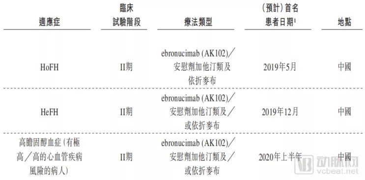 AK102目前正在进行针对纯合子型家族性高胆固醇血症(HoFH)的Ⅱ期临床研究,并且还将于2020年上半年启动有关高胆固醇血症的另一项Ⅱ期临床试验。