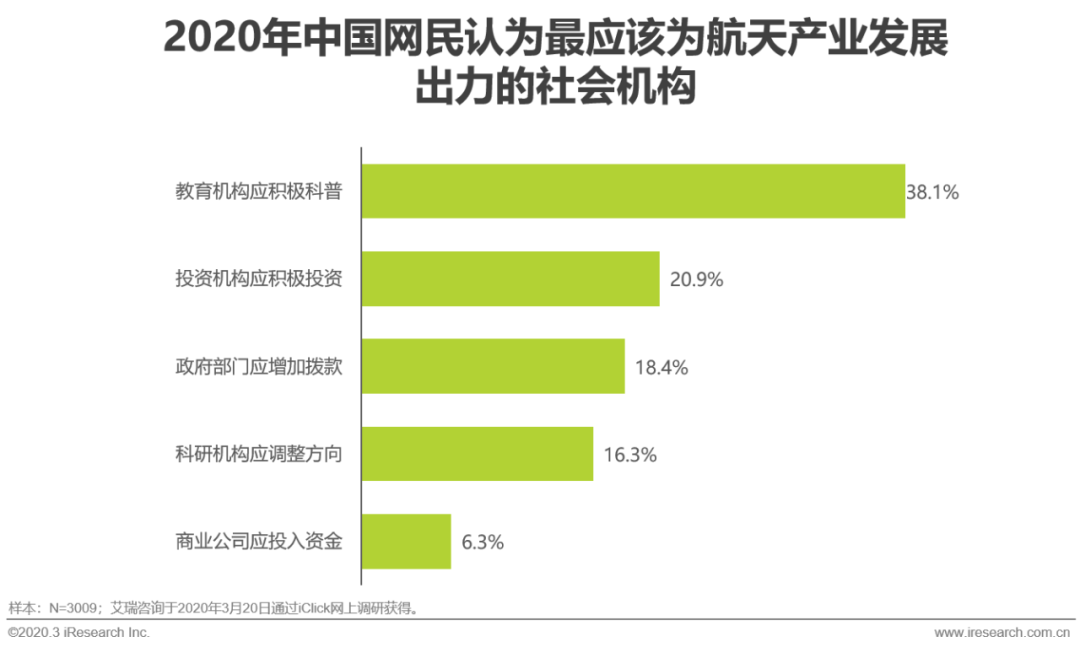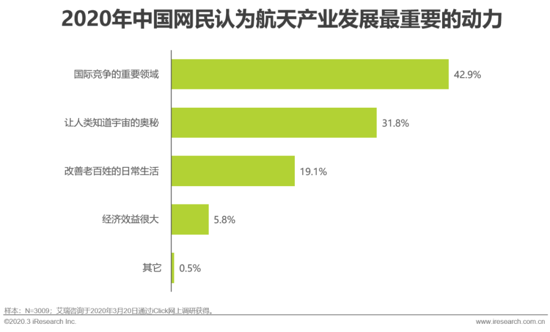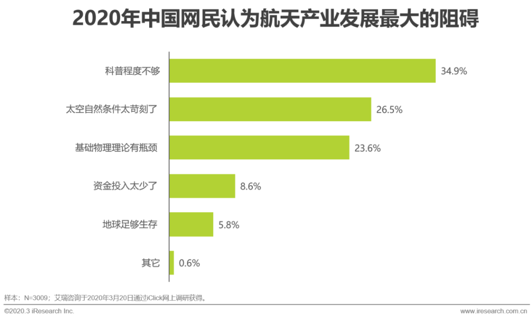 所以42.9%的网民都认为目前航天产业发展的动力源自于国际间的竞争,也就是说在民众心中,尽管航天充满了魅力,但和老百姓毫无关系。同时,34.9%的被访者认为,科普程度不够是当下航天产业发展的最大阻力。动力与阻力之间的断层已经到了不得不解决的节点。