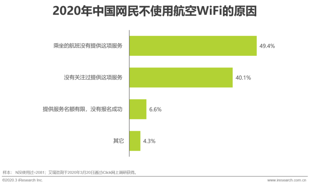 未使用的原因进一步证明航空WiFi满意度背后的隐忧
