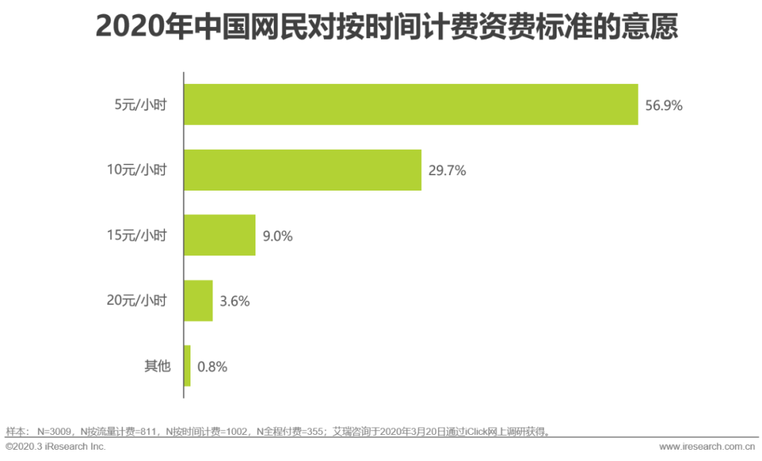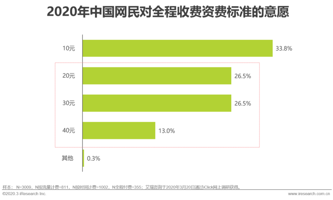 作为航空公司,可以采取订票时让用户勾选的方式,购买航空WiFi服务,并且在购买时说明该服务可选择时长、流量或全程三种模式。可以看到资费总价超过20元,将失去33.8%的用户,因此可以采取一定程度的价格歧视策略,即对不同收费价格,给予不同的带宽或速率,以达到尽可能争取客户,最大化收益的目的。
