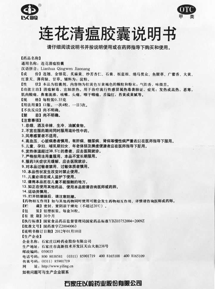 以岭药业董事长吴以岭2016年接受财新网采访时表示,连花清瘟胶囊治疗甲型流感在流感症状缓解时间、病毒核酸转阴时间与达菲相当,退热、缓解咳嗽、咽痛、乏力等症状优于达菲而无达菲副作用……“在国内流感疫情暴发时发挥了积极的防控作用,目前该药列为卫计委甲流、乙流、人禽流感诊断治疗指南和专家共识推荐用药”。