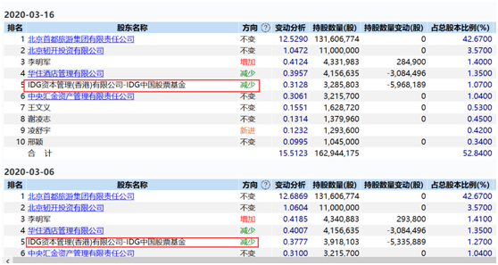 根据公司公告,IDG资本自2018年以来陆续通过竞价交易、大宗交易、协议转让或者其他方式减持全聚德的股份。而进入2020年以来,其减持速度明显加快,仅3月份就有两次操作,分别减持总股本的1.73%和1.93%,目前股份只剩1.07%,而在2017年,IDG资本持有5.87%的全聚德股份。