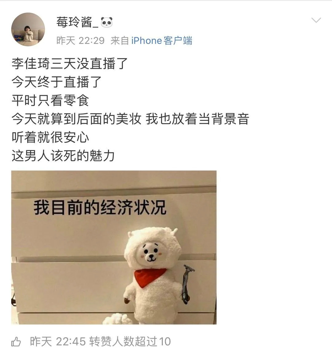在“淘宝一哥”李佳琦的直播间,推荐的食品占比高达25%,“口红一哥”似乎已经转型成了“零食一哥”。4月12日,李佳琦直播文和友牌小龙虾,72500组秒没。