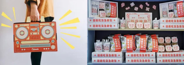 艾格吃饱了的复古纸质包装,以及手提式收音机形状都是唤起国货记忆,传统文化的元素,将食品和场景紧密联系在一起。