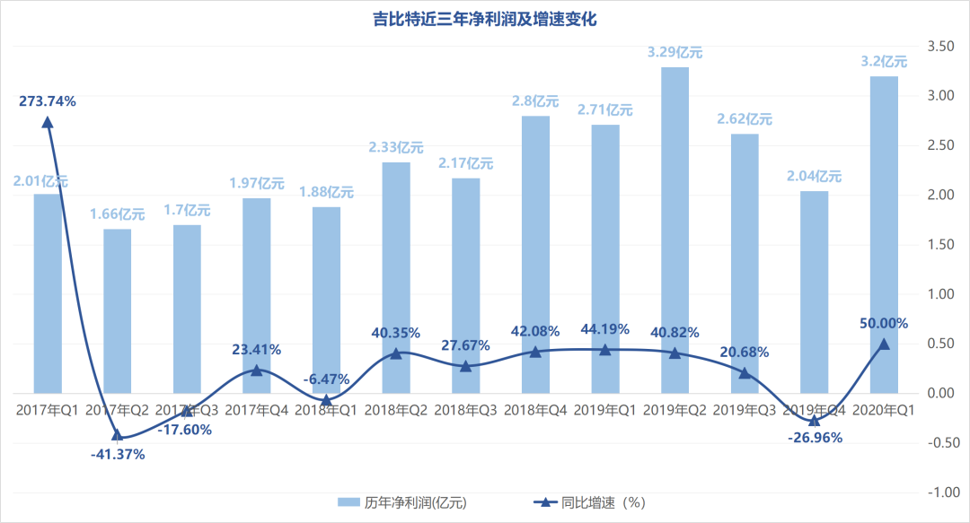 今日(4月13日),吉比特公布了2020年一季度业绩预告,预计期内实现归母净利润约3.20亿元至3.27亿元,与2019年第一季度相比增50.00%至53.00%;预计扣非净利润为2.94亿元至3.00亿元,与2019年第一季度相比增加47.00%至50.00%。