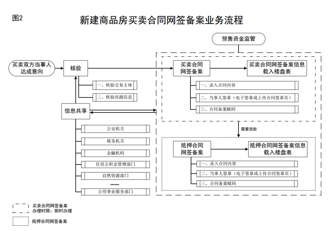 (九)实现网签即时备案。按照减环节、减材料、减时限的要求,编制统一标准的房屋网签备案流程和办事指南。当事人仅需录入交易合同必填字段,房屋网签备案系统即可自动比对核验楼盘表信息及交易主体资格,自动生成合同文本。推行房屋交易合同网上签约即时备案,当事人完成签约后,通过相关技术手段实现即时备案,生成备案编码,在楼盘表中自动更新房屋交易状况信息。