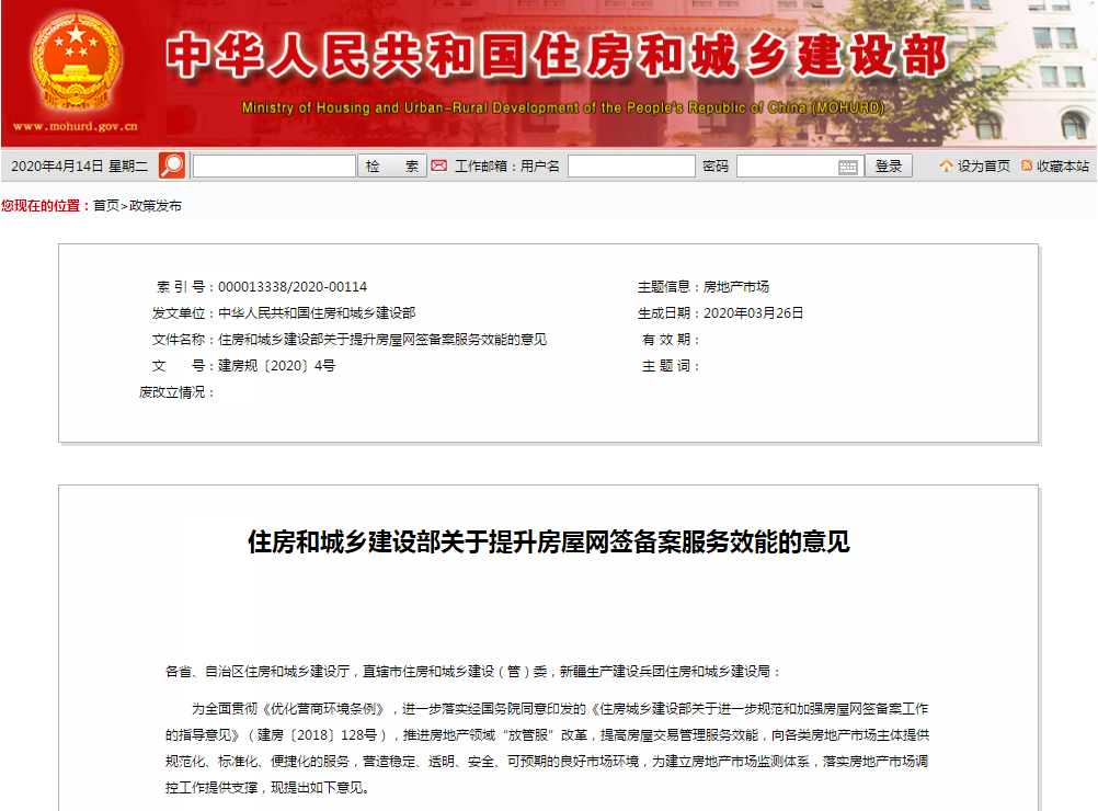 就在4月13日晚,住建部发文:全面采集楼盘信息,实现网签及时备案。
