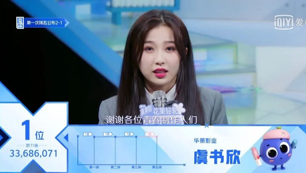 在节目开播前,恰逢虞书欣参演的影视剧《下一站是幸福》播出,女二号蔡敏敏一角让她积累了短期热度。而《下一站是幸福》背后的出品公司之一,就是虞书欣的经纪公司华策影视。华策影视早在去年就尝试向《青春有你》中输送了6名训练生,但热度不高,第二季让原本专注于演戏的虞书欣转战综艺选秀,却收获了远高于之前的成绩——虞书欣人气居高不下,在第一次排名公布中获得第一。