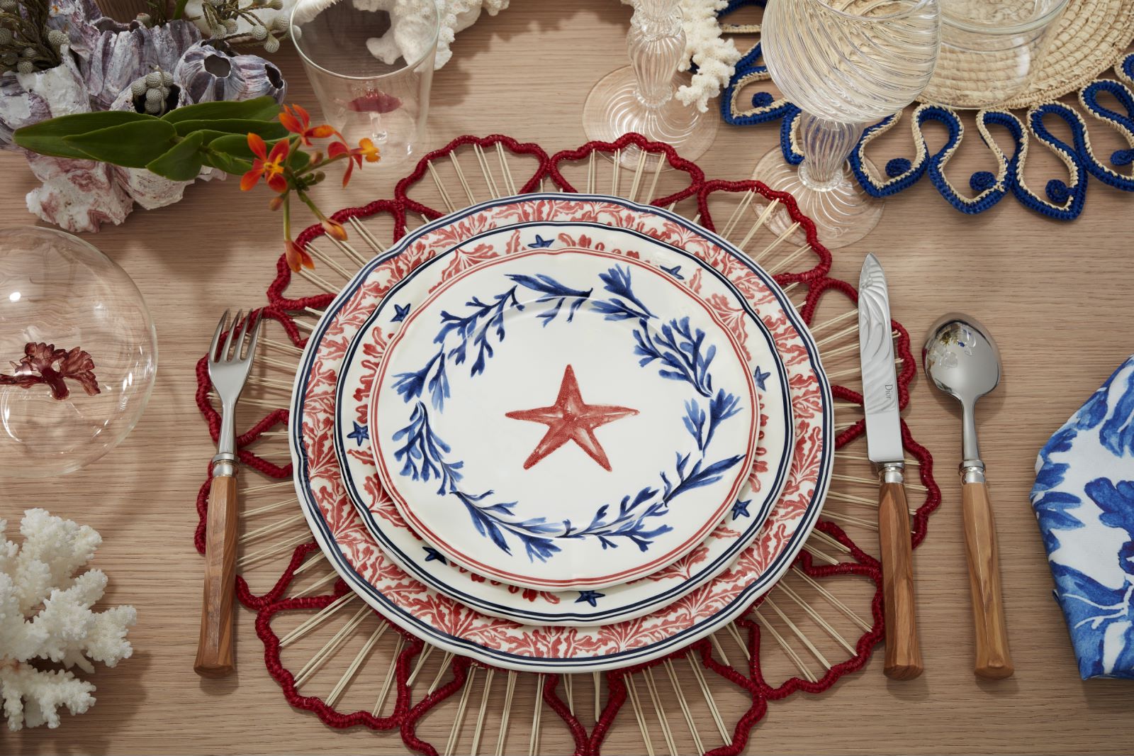 而在即将发售全新COPACABANA和DIOR GARDENS系列里,这种由Dior精髓延伸出独特美学依然被继续书写。COPACABANA系列灵感来自于品牌创始人Christian Dior对巴西风格运用的经历,设计师通过海藻图案点缀的餐盘,装饰玻璃球的鱼缸以及用拉菲草编织的餐垫来营造出南美海南的异国度假情调。
