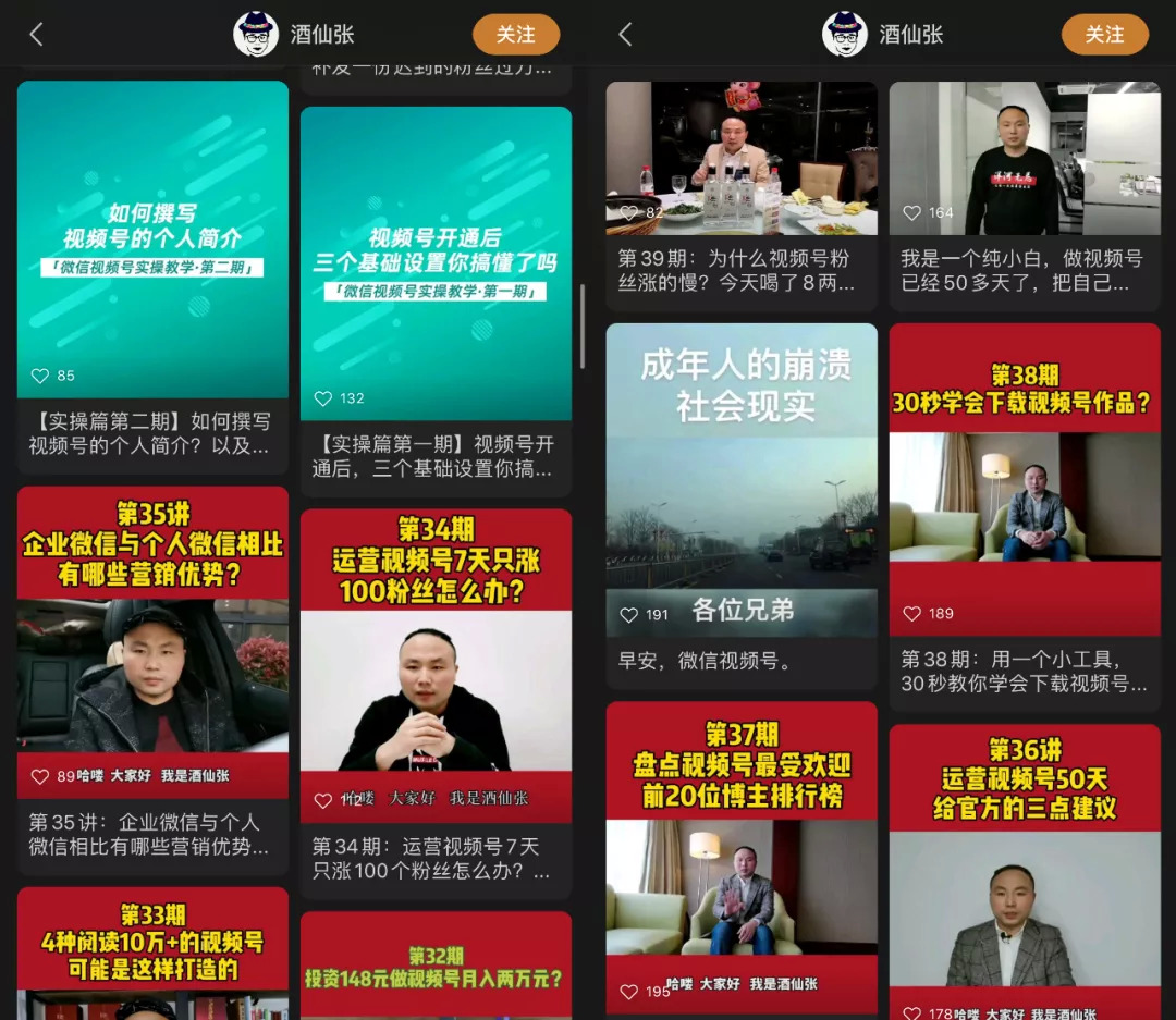 前期很多人并不了解视频号,酒仙张做的是教程。