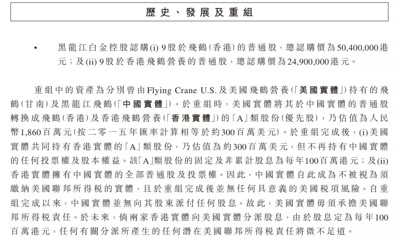 在飞鹤赴美上市的前一年,美国飞鹤营养收购了黑龙江飞鹤的全部股权,代价为70万美元。飞鹤称,该金额是参照黑龙江飞鹤于2002年5月的注册资本额厘定。