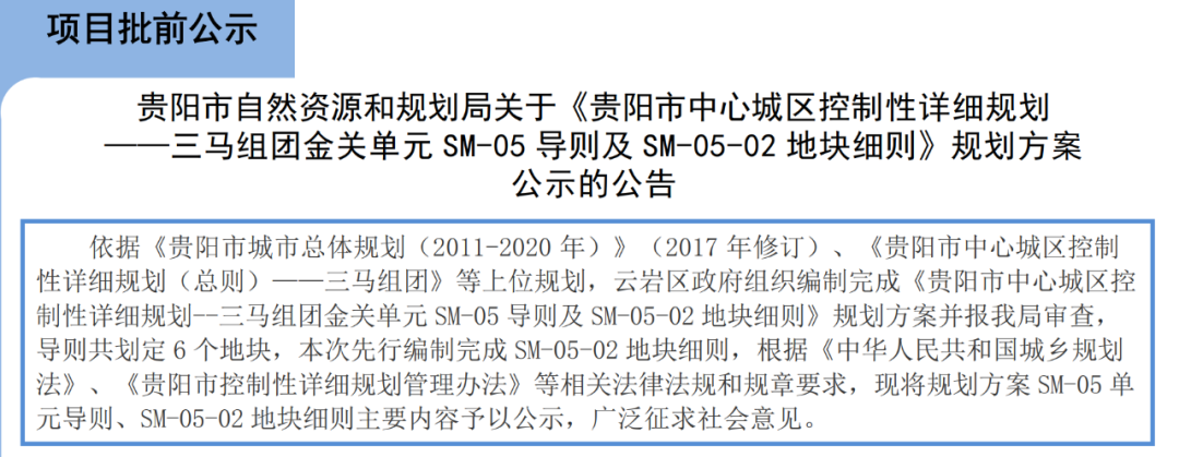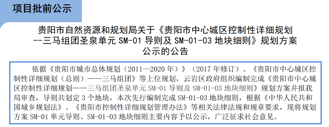 其中,规划编制的细则地块有1个:SM-01-03地块,该地块北至大洼接观山湖区,南至北京西路,东至黔灵山脉,西至西二环。
