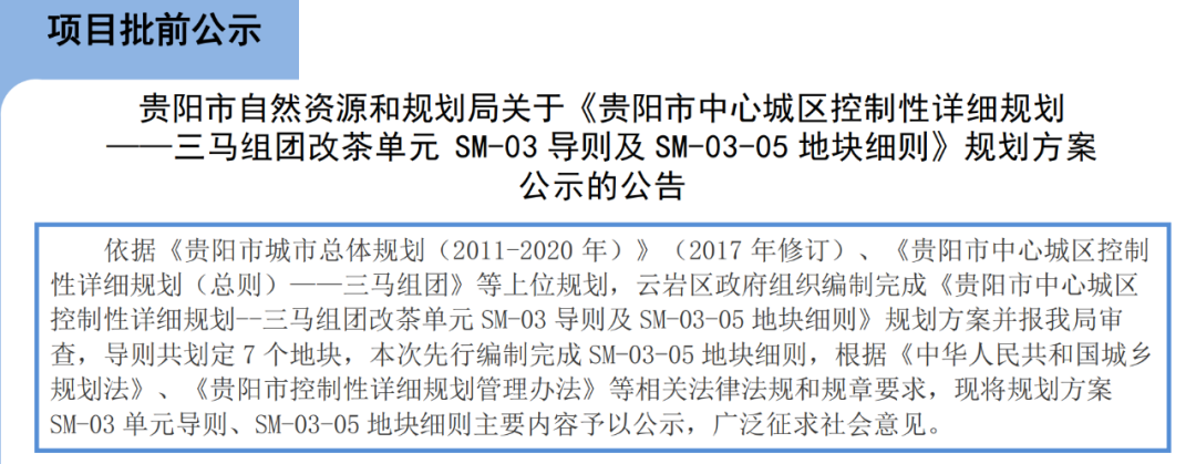 其中,规划编制的细则地块有1个:SM-03-05地块,该地块位于改茶单元东侧,以北侧马王路、西侧贵广高铁、西二环以及黔灵山脉为界。