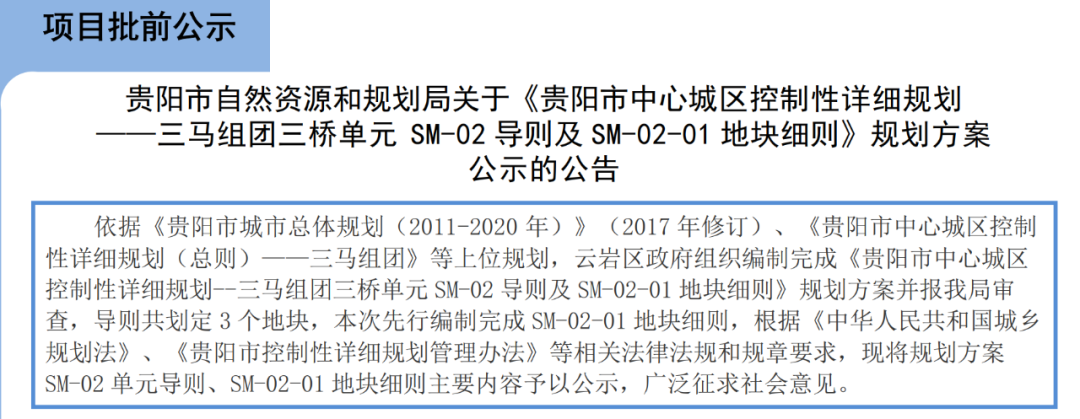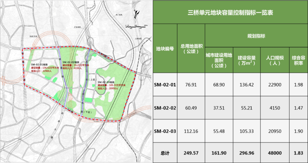 三桥单元SM-02-01地块北至北京西路、东至贵遵路、南抵马王路(规划)、西靠同城大道(规划),规划面积76.91公顷,其中城市建设用地68.90公顷,总建筑量133.11万平方米,居住人口2.29万人,综合容积率1.93。