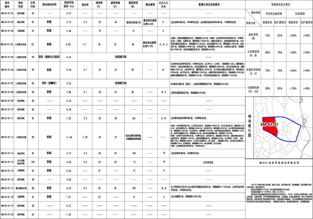 SM-02-01总用地面积166.06公顷,其中,城市建设用地47.11公顷;总建筑量75万平米,居住人口1.55万人,综合容积率1.59。
