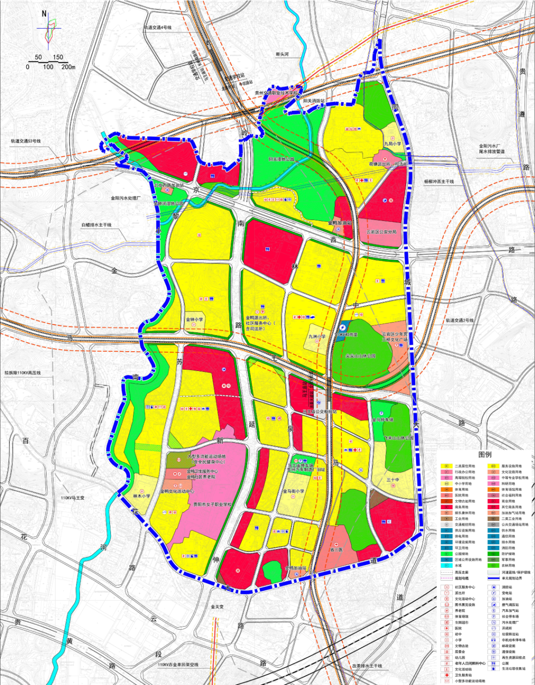 路网方面,规划有金阳大道延伸段、马王路、北京西路、花云路、合肥路延伸段5条主干道,及百花大道、茶园路、规划次干道。