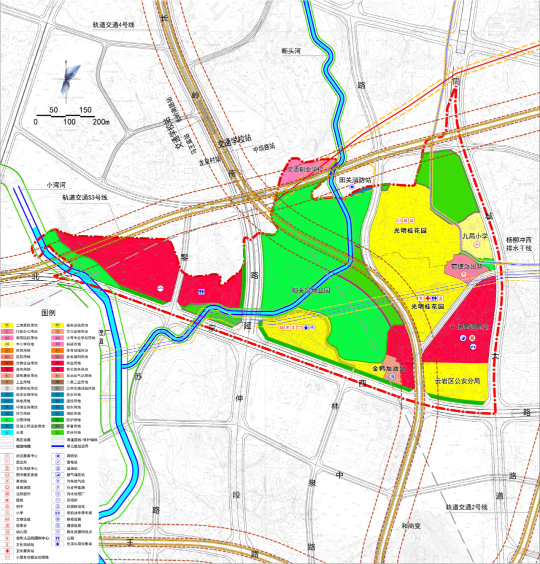 城市绿线方面,规划有体公园4处、小湾河城市公园、普天居住区公园、人文纪念公园、中型公园6处、街头绿地9处。