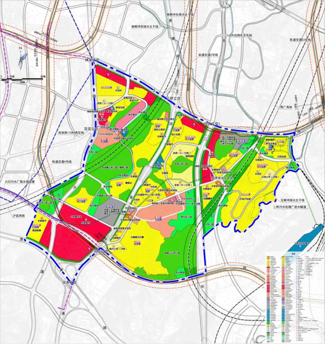 路网方面,规划有中环、西二环2条快速路,贵遵路、同城大道、北京西路、中坝路4条主干道,及3条次干道。