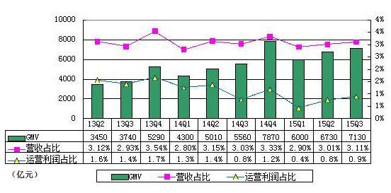据悉,阿里集团GMV、营收和运营利润间还存在着微妙平衡关系,阿里GMV过去2年GMV翻倍,但营收占比始终保持在2.8%-3.54%的水平,运营利润占比则在0.4%-1.7%之间。