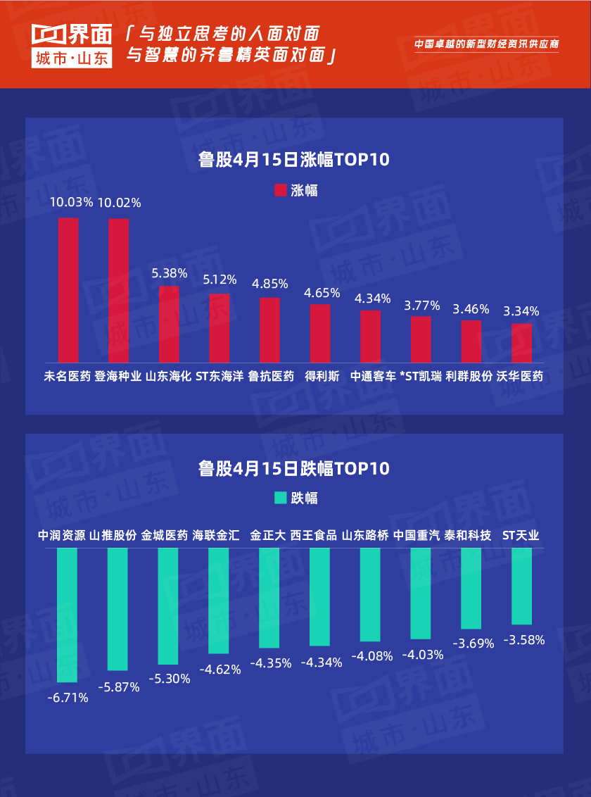 4月15日,山东省内沪深股票有52只个股上涨,151只下跌,6只与上一个交易日收盘价持平;