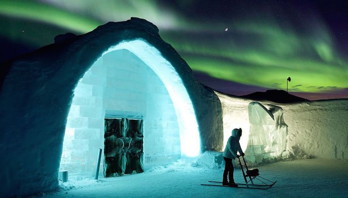 1989年起的每个冬天,在位于北极圈以北120英里的瑞典境内拉普兰,一家临时的冰雕酒店都会开门营业,欢迎来自全球看极光的游客。不过,因为时间有限,而且酒店里的房间多由世界级建筑师设计,房间总是供不应求,很多时候提前三个月预约也订不到,因此许多游客最后都只能在酒店前拍照留念,造成了不少人的遗憾。