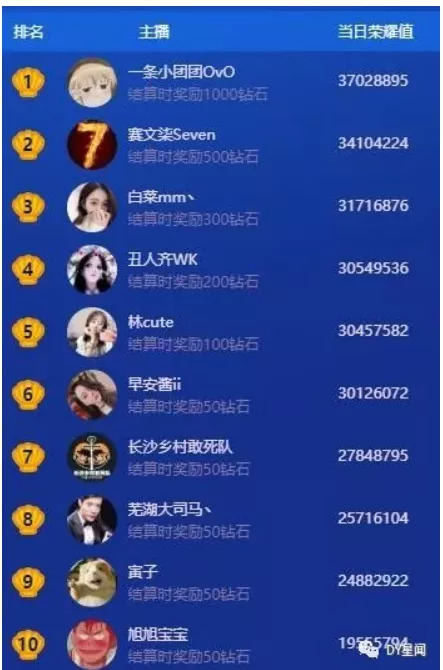 2019斗鱼粉丝节十大主播排行,图源“DY星闻”