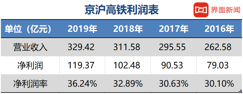 4月15日晚间,京沪高铁(601816.SH)披露上市后的首份年报。2019年,京沪高铁营业收入329.42亿元,同比增长5.72%,归属于上市公司股东净利润119.37亿元,同比增长16.48%。