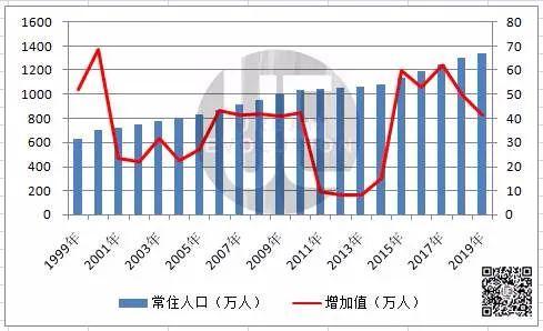 土地稀缺、住房供应不足的同时,是深圳人口的快速增长。过去十年,深圳平均每年人口增加超过50万,2019年虽然有所减缓,但仍然增加了40万。目前,深圳人口已经达到1350万。(实际人口数可能被低估,普遍认为深圳常驻人口在2000万左右)