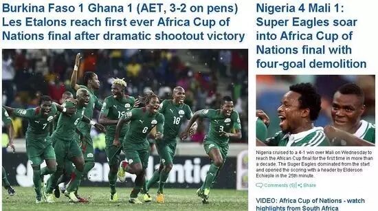 (布基纳法索点杀加纳的新闻页面,估计足球是这些球员获得快乐的唯一方式)