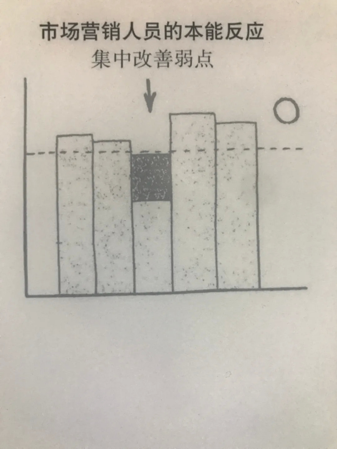 《哈佛商学院最受欢迎的营销课》的作者扬米·穆恩曾通过教学期间的研究发现,在面对市场的激烈竞争时,大部分企业的做法是集中改善自己产品的弱点,以便让自己看起来无懈可击。就像如今在智能手机行业,很多手机品牌试图在芯片、存储、拍照等各方面性能上都达到中上水平,让自己看起来没有缺陷,这种手机被嘲以“水桶机”之称。