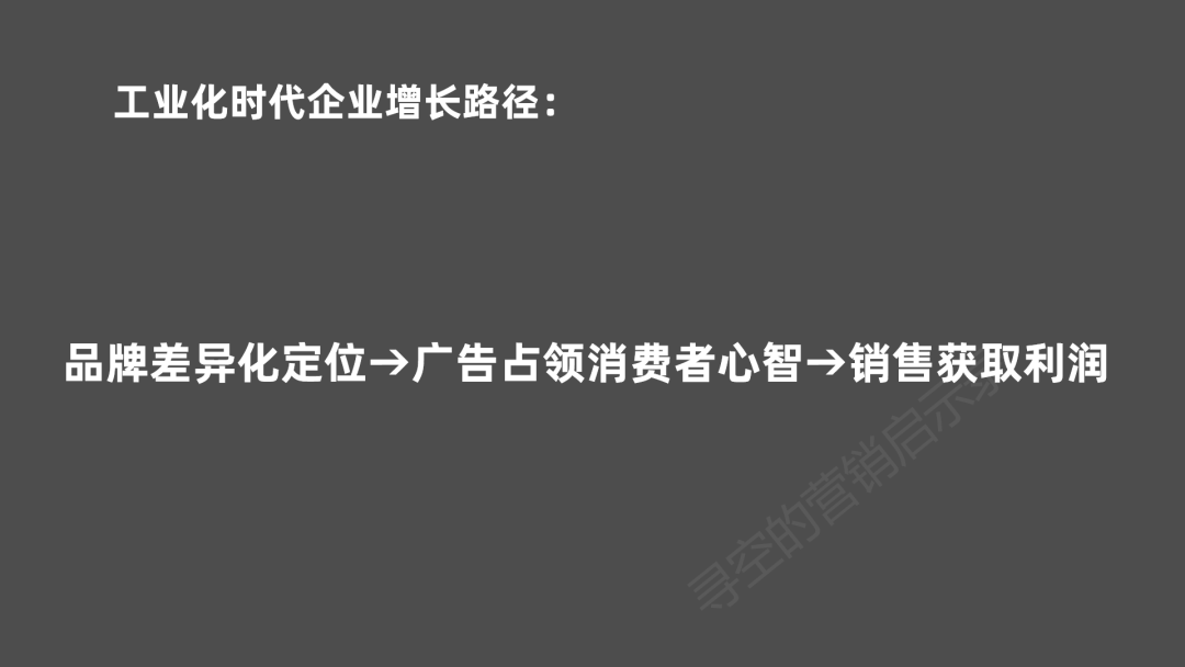 差异化战略诞生于工业化时代,彼时企业的核心目标是盈利。对于一个企业来说,针对细分市场推出产品,再用广告强调自己的定位,占领消费者心智,通过销售获取利润,是赢得市场的路径。