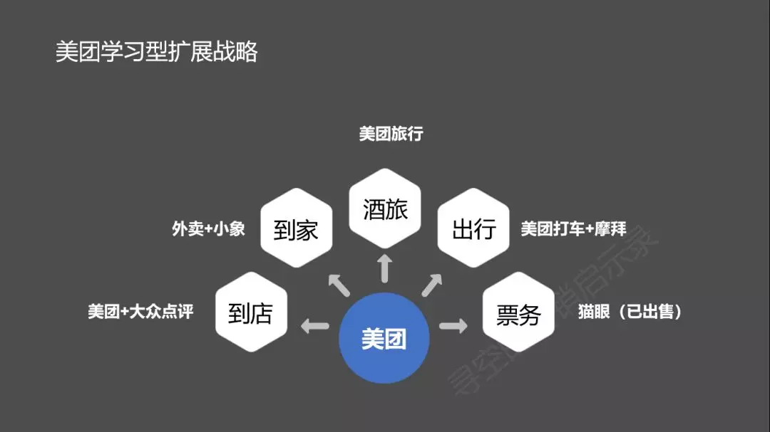 美团在0-1阶段针对团购的细分市场,推出美团网,经过百团大战形成优势品牌,在1-10阶段扩展至外卖、旅行、出行等综合品牌。