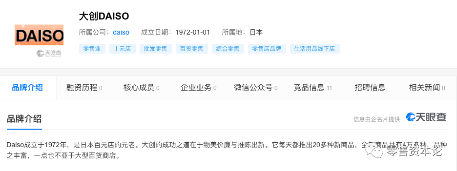 天眼查数据显示,Daiso成立于1972年,是日本百元店的元老。大创DAISO所属公司:daiso,成立于1972年1月1日。