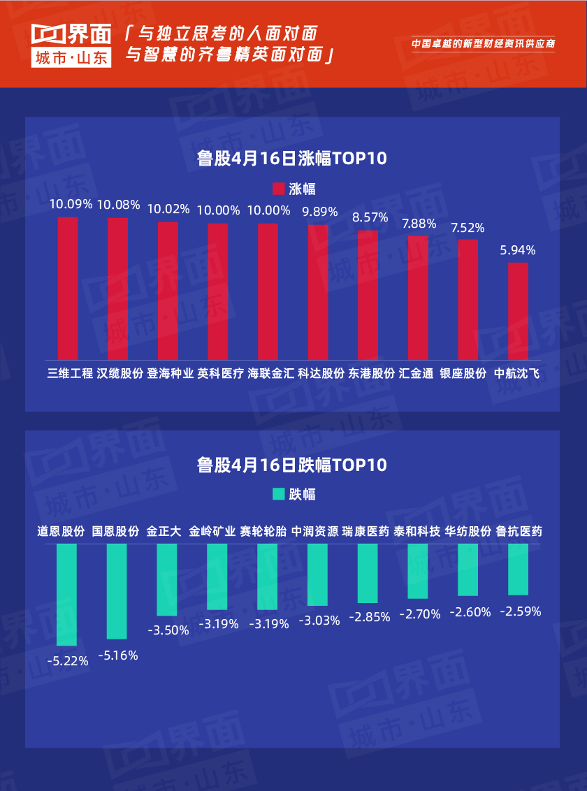 4月16日,山东省内沪深股票有109只个股上涨,89只下跌,11只与上一个交易日收盘价持平;