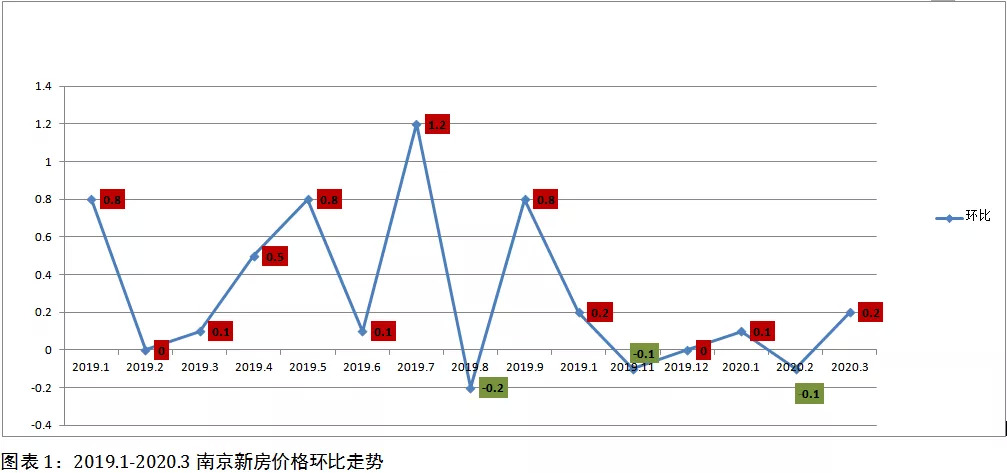 据国家统计局数据显示,自2019年1月份以来,南京房价稳中有涨,共出现三次下跌,其中两次出现于去年8月和10月,分别下降在0.2、0.1,今年唯一一次下降是在2月份,环比下降0.1,主要受疫情影响房地产市场还未恢复正常,政府及时出台了一系列政策措施,保障房地产市场持续平稳健康发展,3月份新房也迎来了小幅上涨。