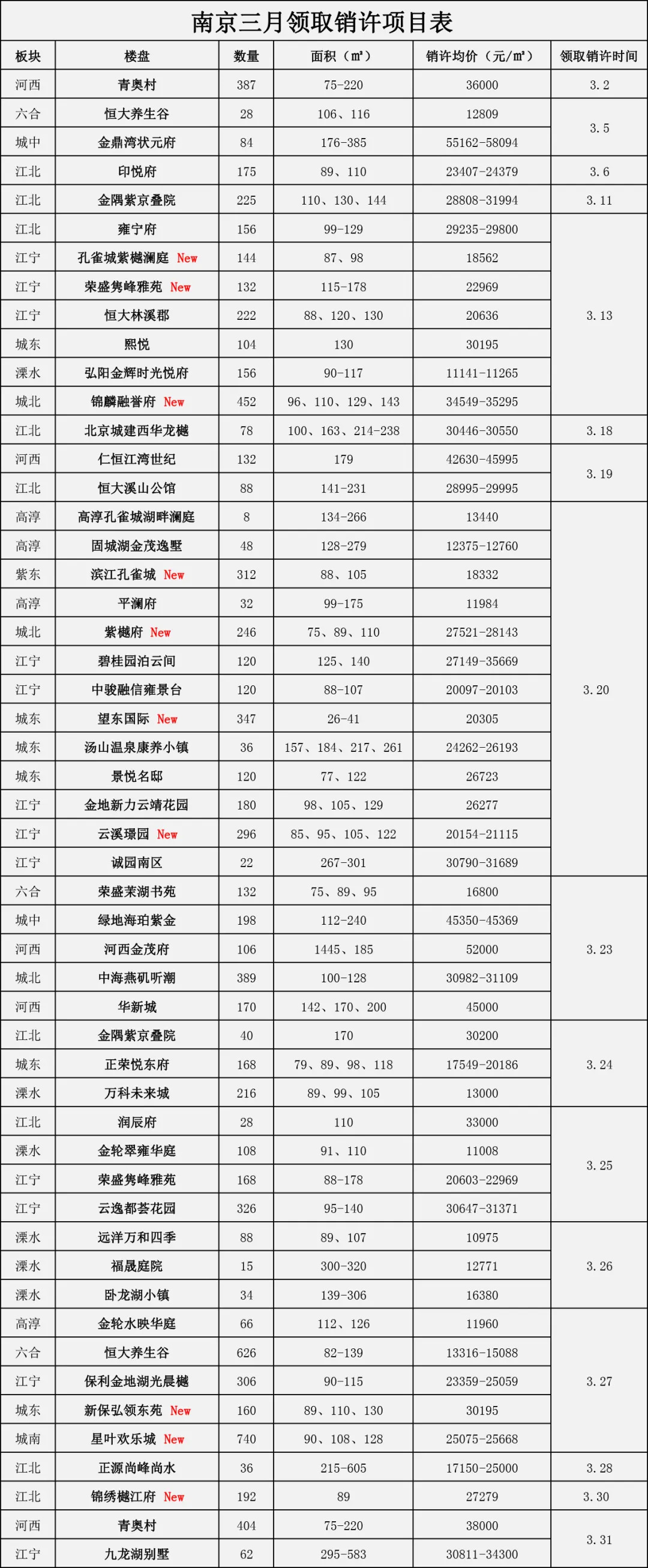 随着疫情进入稳定期,今年3月,南京上市量也恢复正常,据统计,南京共49家楼盘领取52次销许,且不少楼盘价格迎来上涨。