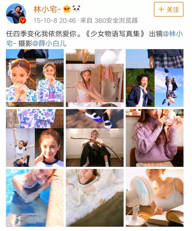 伴随着微博话语权的崛起,林小宅平台运营的重心逐渐向着微博倾斜。因为风格独特,林小宅在微博颇受追捧,日系少女的人设很吃香,写真配合日常随手拍,仅凭美照,林小宅就能吸粉固粉。