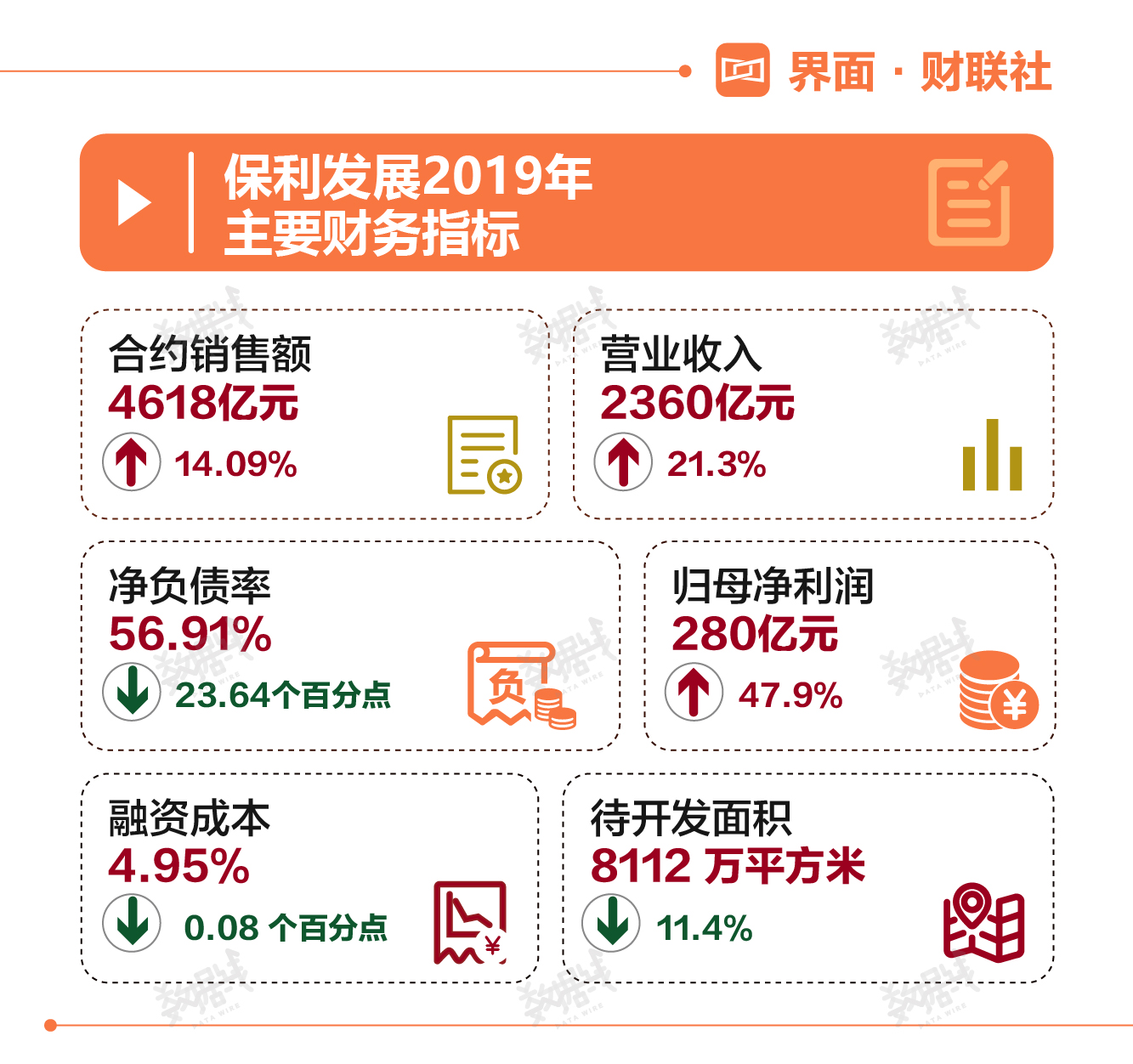 有赖于货币现金增加22.91%至1394.19亿元,保利发展2019年底的净负债率同比下降23.64个百分点至56.91%。保利发展财务总监周东利表示,净负债率下降主要是因为公司加强了销售回笼和资金回收。