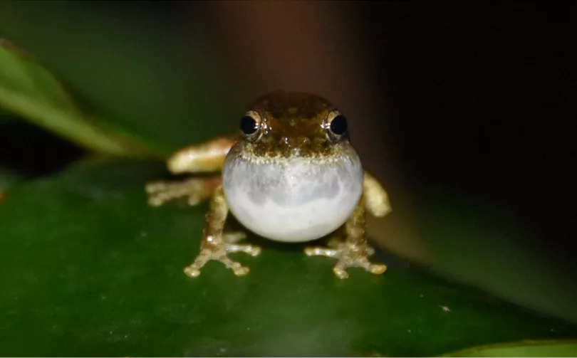 雄性箭毒蛙的“腹语”策略(图片源自文献Narins et al., 2003,PNAS, 作者加工)